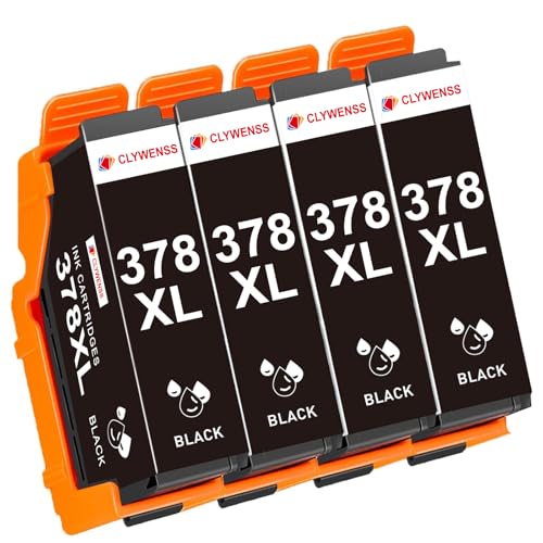 Clywenss 378XL Cartouches d'encre Noir Compatibles avec Epson 378 XL Multipack pour Expression Photo XP-8500 XP-8505 XP-8600 XP-8605 XP-8606 XP-8700 XP8500 XP8505 XP8600 XP8605 XP8606 XP8700, 4-Noire