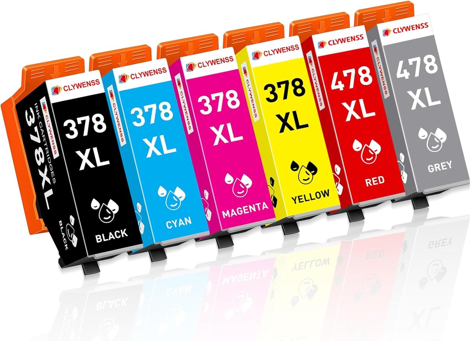 Clywenss 378XL 478XL Cartouches d'encre Compatibles avec Epson 378 478 XL Multipack pour Expression Photo HD XP-15000 XP15000 XP 15000 Imprimante, 6-Couleurs (Rouge, Gris, Noir, Cyan, Magenta, Jaune)