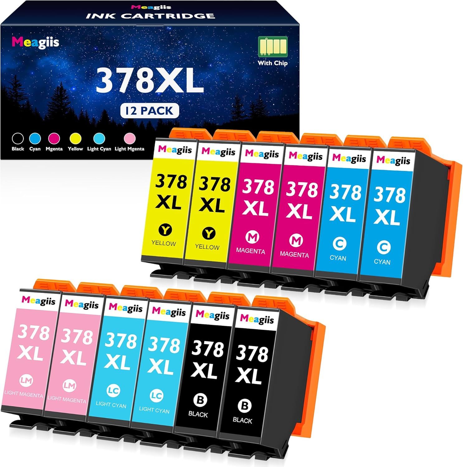 Meagiis 378XL Cartouches d'encre Compatible pour Epson 378 XL 378XL Multipack pour Epson Expression Photo XP-8700 XP-8505 XP-8600 XP-8605 XP-8500 XP8500 XP8505 XP8600 XP8605 XP8700 (12 Paquets)