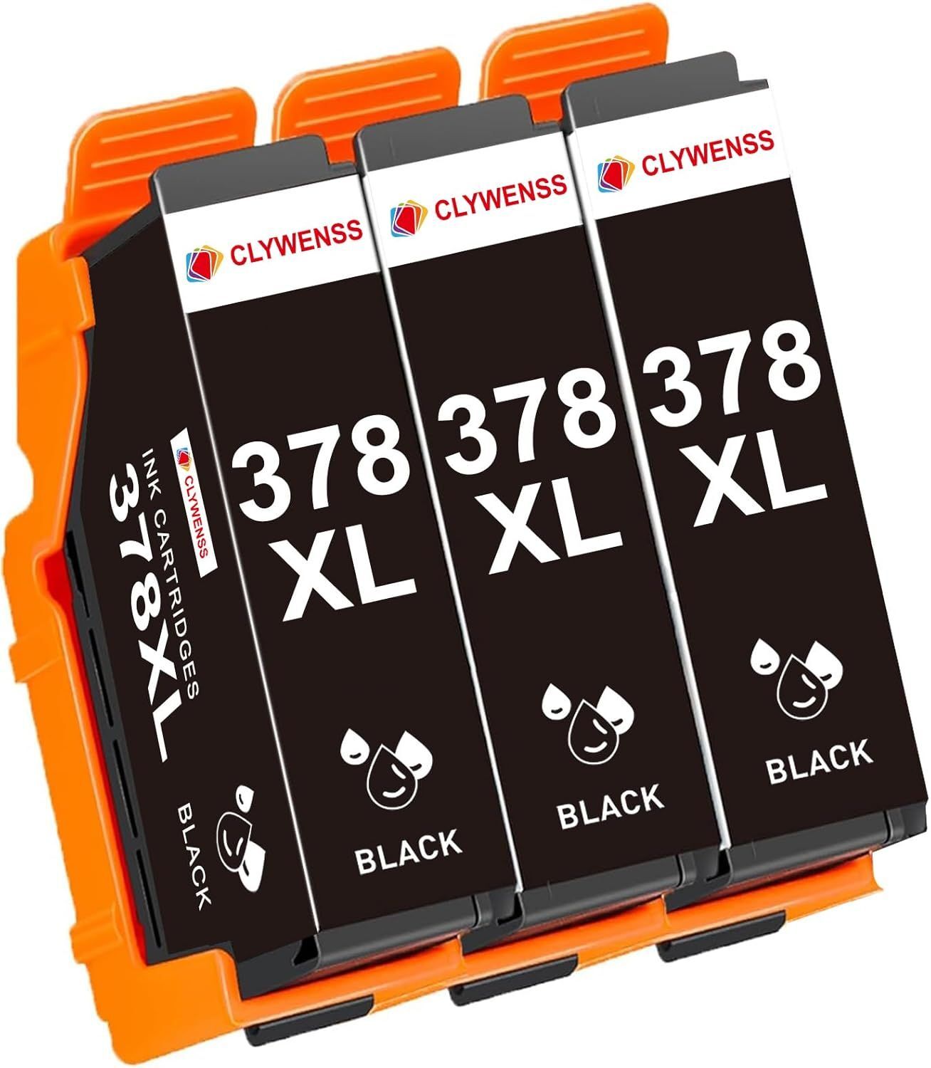 Clywenss 378 XL Cartouches d'encre Noir Compatibles avec Epson 378XL Multipack pour Expression Photo XP-8500 XP-8505 XP-8600 XP-8605 XP-8606 XP-8700 XP8500 XP8505 XP8600 XP8605 XP8606 XP8700, 3-Noire