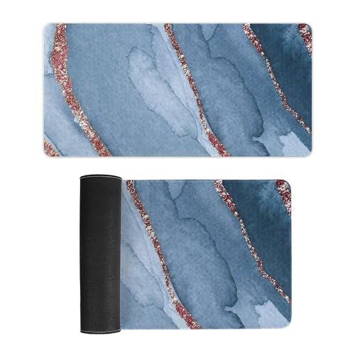 ENEN Tapis de Souris d'Ordinateur, 3D Marbre Mouse Pad Antidérapant, Base en Caoutchouc, Glissement Facile, Grand Tapis de Bureau pour Domicile, Bureau (Bleu 02,30x80cm)