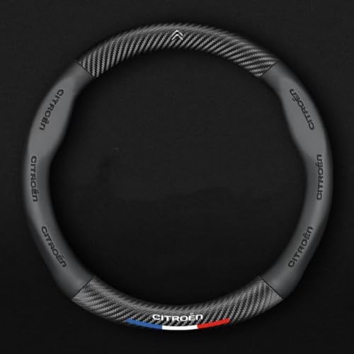 ONEMAJI Couvre Volant Voiture pour Citroen C4 SpaceTourer (3D) 2018-2021, Couverture Volant en Cuir Antidérapant Respirant Protection Volant Accessoire Voiture,O-Shape
