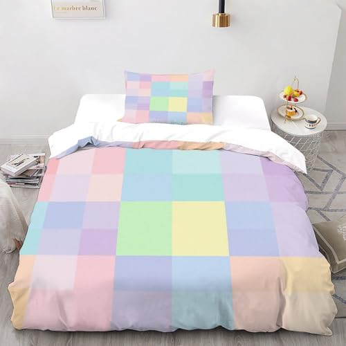 TiTCiveR Pastel Checkered Housse De Couette 2 Pièces Simple Geometric Shape 3D Motif Imprimé Ensemble Literie Microfibre Adulte avec Fermeture Éclair Et Taies d'oreiller Single(135x200cm)