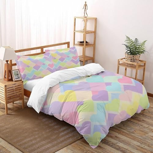 TiTCiveR Hearts Colors_2 Housse De Couette 3 Pièces Aesthetic LoveShape 3D Motif Imprimé Linge De Lit Microfibre pour Adulte Et Enfant avec 2 Taie d'oreiller Double(200x200cm)
