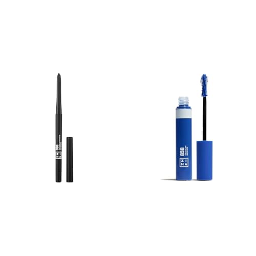 3INA MAKEUP - The 24h Automatic Eye Pencil 900 + The Color Mascara 850 - Crayon Yeux Automatique Noir - Waterproof - Mascara Bleu à la Kératine Végétale pour Cils - Vegan - Cruelty Free