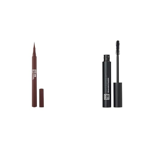 3INA MAKEUP - The Color Pen Eyeliner 575 + The 24h Level Up Mascara 900 - Eyeliner Marron 10h longue durée + Mascara Noir Effet D'allongement et de Mise en Forme - Vegan - Cruelty Free