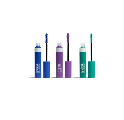 3INA MAKEUP - The Color Mascara 482 + The Color Mascara 793 + The Color Mascara 850 - Violet - Turquoise - Bleu - Mascara à la Kératine Végétale - Mascara Coloré pour Cils - Vegan - Cruelty Free