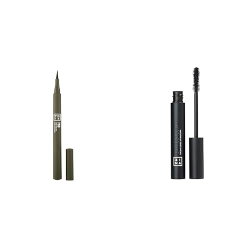 3INA MAKEUP - The Color Pen Eyeliner 759 + The 24h Level Up Mascara 900 - Eyeliner Olive Vert 10h longue durée + Mascara Noir Effet D'allongement et de Mise en Forme - Vegan - Cruelty Free