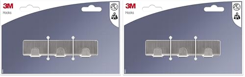 3M Crochet Adhésif en Métal - 1 Barre avec 3 Crochets Rectangles (Lot de 2)