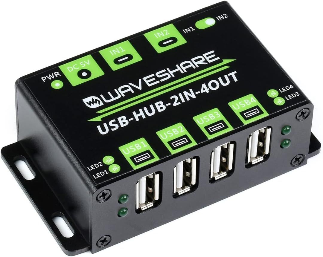 Waveshare Industrial Grade USB HUB Extending 4X USB 2.0 Ports Switchable Dual Hosts Sharing USB Devices for Two Hosts Free Up The Crowded Desktop