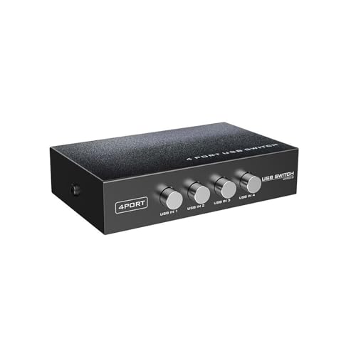 KieTeiiK 4 Port USB Switcher High Speed 480Mbps Metal Exchange Box for Multi Computer Sharing with Driver Cut Platform USB Exchange