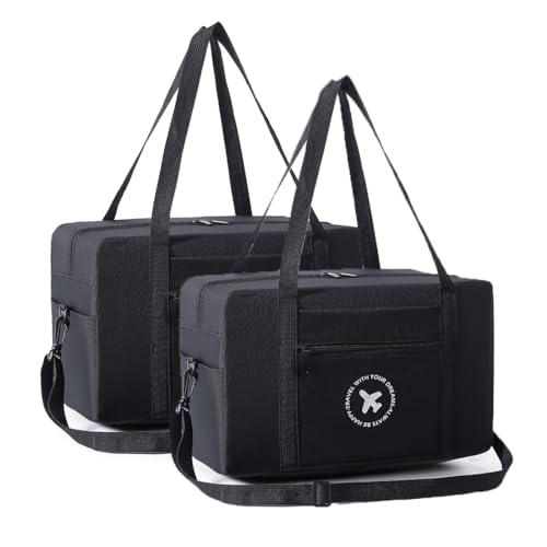 BAGZY Sac de Voyage Pliable 40x20x25 Ryanair 2PCS - Sac Cabine Avion à Bandoulière Weekend Pour Homme Femme - Valise Voyage Baggage (Noir)