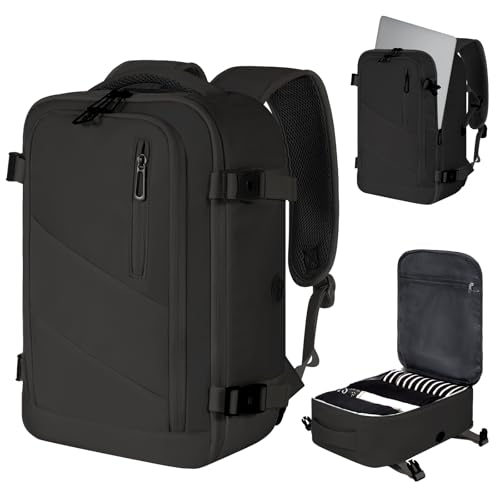 VOESLD Sac a Dos Voyage Cabine Avion 40x20x25 pour Ryanair, Sac a Dos avec Organisateur de Sac Suspendu, Sac à Dos Ordinateur Portable Sacs à Dos Loisir Noir 20L