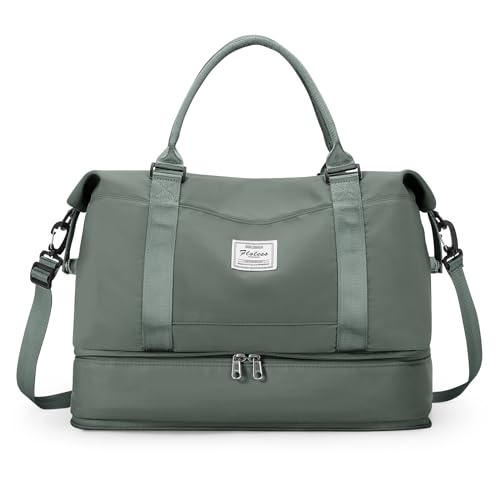 HPLQQ Sac de Voyage Femme 40x20x25, Bagage Cabine 40x30x20 Ryanair, Imperméable Sac fourre-Tout de Sport pour Week-End pour Travel Gym Danse avec Compartiment Chaussures,A04-Vert armée