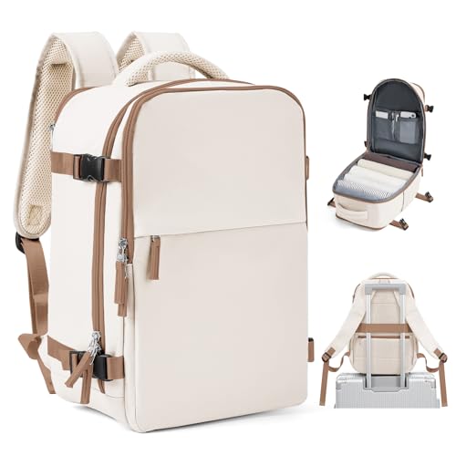 ENZOSUM Sac à Dos Voyage Femme,Bagage Cabine 40x30x20 Pour Ryanair Cabine Avion pour Eurowings 24L Sac 40x30x20 Bagage à Main Sac de Voyage Femme pour Ordinateur Portable 15.6 Pouces Beige