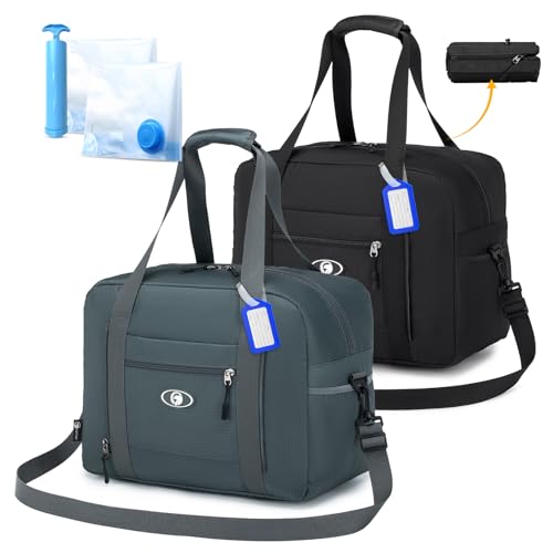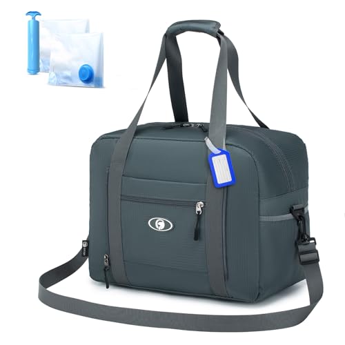 YOODI 40x30x20 Wizzair Vueling Sac de Voyage Cabine Avion Pliable Etanche Oxford Petite Bagage Cabine a Main sous Le Siege 25L Léger Gris Sac de Weekend Duffel avec Bandoulière pour Femme, Homme