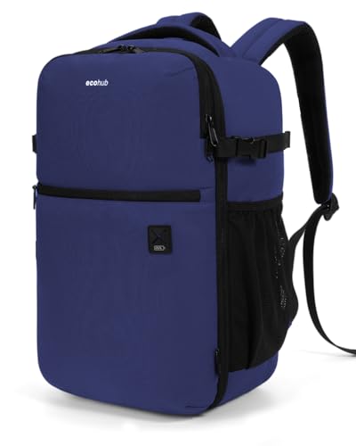 ECOHUB Bagage Cabine 40x20x25 pour Ryanair Sac à Dos Voyage Cabine Avion 40x30x20 Sac à Dos pour Ordinateur 14 Portable, Petit Travel Backpack Femme Homme, Sous le Siège, Recyclable PET, Bleu, 20L