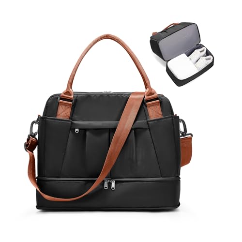 HPLQQ Sac de Voyage Femme 40x20x25, Bagage Cabine 40x30x20 Ryanair, Imperméable Sac fourre-Tout de Sport pour Week-End pour Travel Gym Danse avec Compartiment Chaussures,A05-Noir-Marron