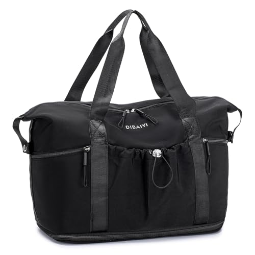 SEAFEW Sac de Voyage Femme Sac fourre-Tout de Sport Imperméable pour Week-End, Cabine Avion Ryanair Bagage Cabine 40x30x20 Easyjet 45x36x20 Extensible pour Travel Gym Danse,J1-Noir