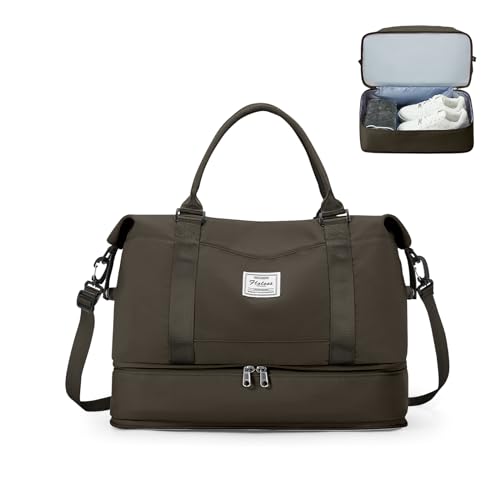 HPLQQ Sac de Voyage Femme, Bagage Cabine 40x30x20 pour Ryanair, Imperméable Sac fourre-Tout de Sport pour Week-End pour Travel Gym Danse avec Compartiment Chaussures,A08-Kaki