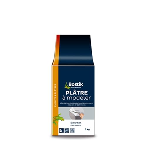 Bostik - Plâtre à Modeler - Moulage et Décorations - Mur et Plafond - Intérieur - Prise Retardée 20 minutes - 1 Sac de 5 kg, Blanc