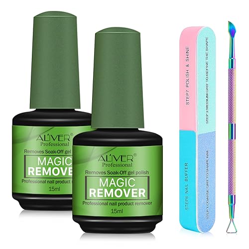 Dissolvant de Vernis à Ongles en Gel Paquet de 2 avec Pousse Cuticule & Lime a Ongles, Remover Vernis Semi Permanent, Enlève Facilement et Rapidement Vernis Gel en 3-5 Minutes, ne Blesse Pas Ongles