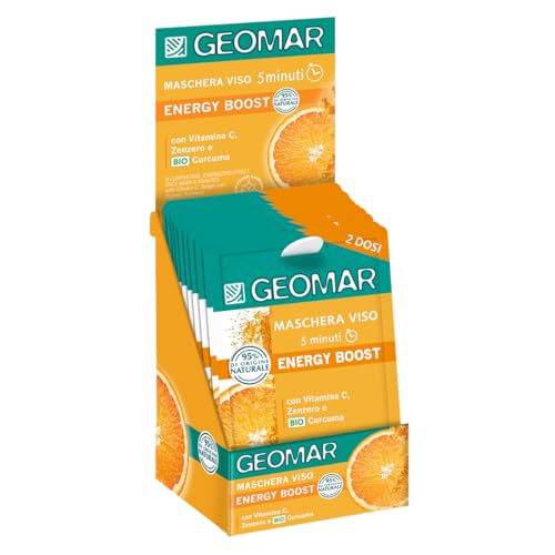 GEOMAR | Masque Visage Energy Boost, Effet Illuminant et Énergisant, 5 minutes, 95% d’Origine Naturelle, Testé Dermatologiquement, Made in Italy, 24 Packs x 2 (7,5 ml chacune)