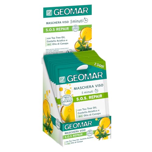 GEOMAR | Masque Visage S.O.S. Repair, Effet Restructurant et Rééquilibrant, 5 minutes, 95% d’Origine Naturelle, Testé Dermatologiquement, 24 Packs x 2 (7,5 ml chacune)