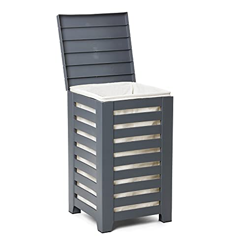 TATAY Panier à Linge 55L | Sac Intérieur Lavable Inclus | Montage Facile en 5 Minutes | Polypropylène Résistant | Design Moderne et Élégant | Corbeille Effet Bois | 34 x 34 x 58 cm - Gris