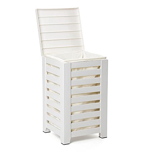 TATAY Panier à Linge 55L | Sac Intérieur Lavable Inclus | Montage Facile en 5 Minutes | Polypropylène Résistant | Design Moderne et Élégant | Corbeille Effet Bois | 34 x 34 x 58 cm - Blanc