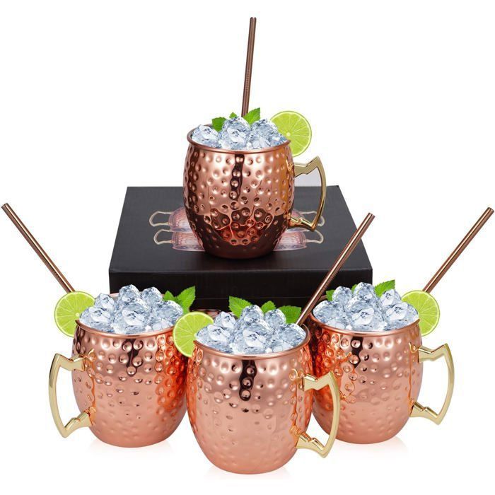 NetBoat - Lot de 4 Moscow Mule Mugs 500 ml en acier inoxydable 304 + 4 pailles et 1 pinceau