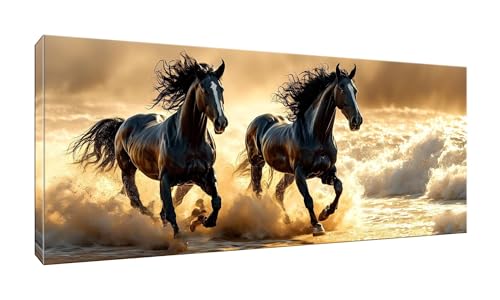 leww 5D Diamond Painting Kit Complet, Ronde Diamond, Grande DIY Diamand Painting Le cheval Frison, Diamant Peinture Adultes Enfants, Cristal Art Set pour Décoration Murale Maison - 30x75cm O-128
