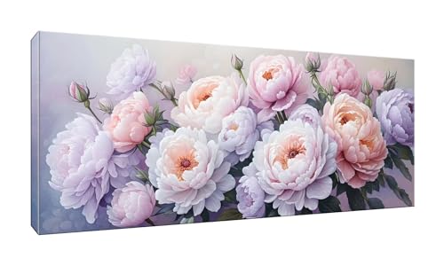Peinture Diamant Adulte, Fleurs de pivoine 5D Diamond Painting Complet,Diamant Strass Point de Croix Cristal Painting, DIY Diamond Art Painting Kits Enfants,pour Maison Bureau Décoration 40x100cm I327
