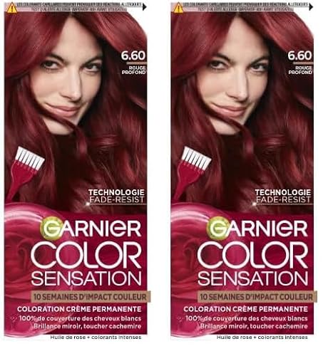 Garnier Color Sensation Coloration - Rouge Profond 6.60 - Coloration Crème Permanente -Tous Types de Cheveux - Couleur jusqu'à 10 Semaines & Couvre les Cheveux Blancs 100% (Lot de 2)