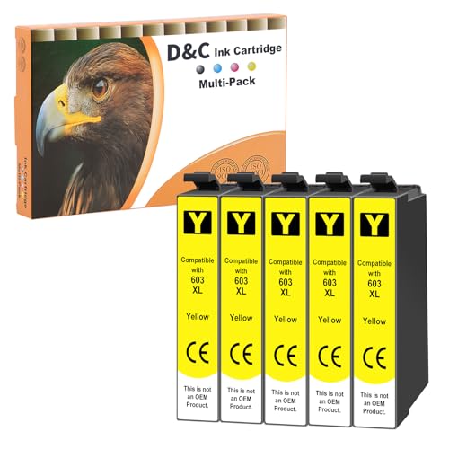 D&C 5X Jaune Cartouches d'encre Compatible pour Epson 603 XL pour Expression Home XP-2100 XP-2105 XP-3100 XP-3105 XP-4100 XP-4105, Workforce WF-2810 DWF WF-2830 DWF WF-2835 DWF WF-2850