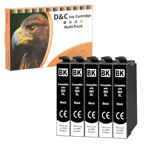 D&C 5X Noir Cartouches d'encre Compatible pour Epson 603 XL pour Expression Home XP-2100 XP-2105 XP-3100 XP-3105 XP-4100 XP-4105 Workforce WF-2810 DWF WF-2830 DWF WF-2835 DWF WF-2850