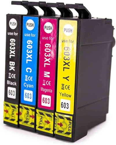 603XL Cartouches compatibles avec Epson 603 XL pour Epson Expression Home XP-2100 XP-3100 XP-4100 XP-2105 XP-3105 XP-4105 WorkForce WF-2830 WF-2850 WF-2810 WF-2835 (1 BK,1 C,1 M,1 Y) ) Rechargeables.