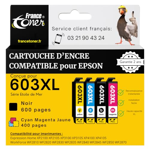 Uprint 603XL Pack 4 Cartouches Compatibles avec EPSON 603 XL Etoile de Mer pour EPSON C13T03A14010-C13T03A44010 pour Epson XP2150 XP2100 Workforce 2810DWF