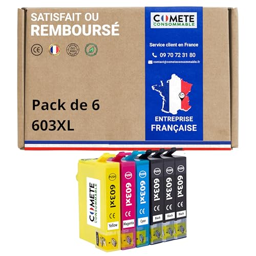 COMETE, Marque Française - 603XL - 6 Cartouches d'encre Compatibles Epson 603 XL Etoile de Mer - pour Epson XP-2100 XP-3105 Workforce WF-2810 WF-2830 WF-2835 WF-2850 (3 Noir 1 Cyan 1 Magenta 1 Jaune)