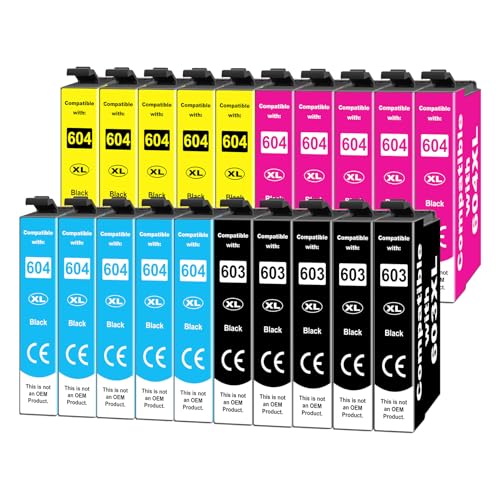 Yowell 20x Cartouches d'encre 603XL compatibles avec Epson 603 603XL pour Expression Home XP-3105 XP-2100 XP-2105 XP-4100 XP-4105 Workforce WF-2830 WF-2810 WF-2835 WF-2850