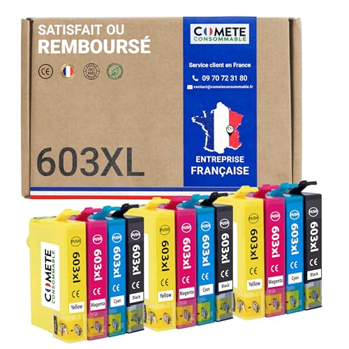 COMETE, Marque Française - 603XL - 12 Cartouches d'encre Compatibles avec Epson 603 XL - pour Epson XP 2100 XP 2105 XP 2150 XP 3100 XP 3150 XP 4100 XP 4150 WF 2810 WF 2820 WF 2830 WF 2850