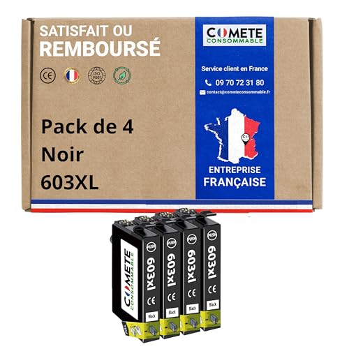 COMETE, Marque Française - 603XL - 4 Cartouches d'encre Compatibles Epson 603 XL Etoile de Mer pour Epson XP-2100 XP-2155 XP-3100 XP-4100 WF-2820 WF-2830 DWF WF-2870 WF-2835 WF-2850 (4 Noir)