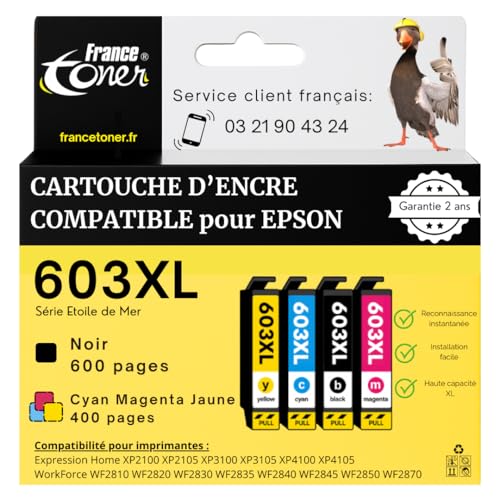 123CONSOMMABLES - 603XL - Pack de 4 Cartouches d'encre Compatible pour Epson 603 XL Etoile de Mer - pour Epson XP-2100 XP-2155 XP-3100 XP-4100 WF-282
