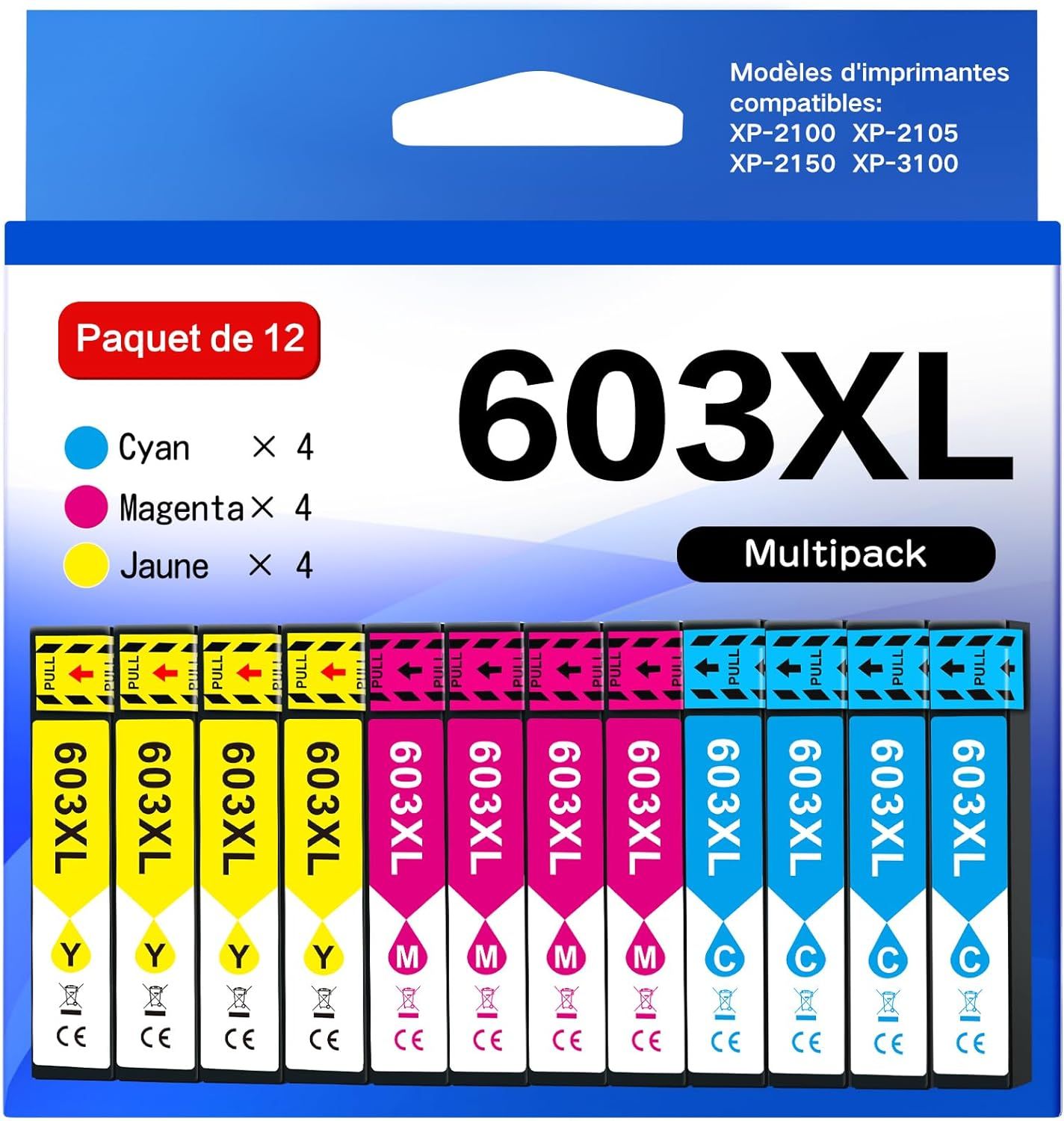 Comete,Marque Française-603Xl-12 Cartouches D'Encre Compatibles Avec Epson 603 Xl-Pour Epson Xp 2100 Xp 2105 Xp 2150 Xp 3100 Xp 3150 Xp 4100 Xp 4150 Wf 2810 Wf 2820 Wf 2830 Wf 2850