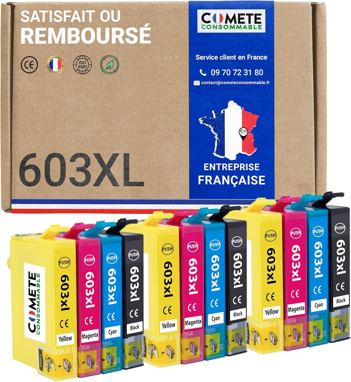 Comete, Marque Française - 603Xl - 12 Cartouches D'Encre Compatibles Avec Epson 603 Xl - Pour Epson Xp 2100 Xp 2105 Xp 2150 Xp 3100 Xp 3150 Xp 4100 Xp 4150 Wf 2810 Wf 2820 Wf 2830 Wf 2850