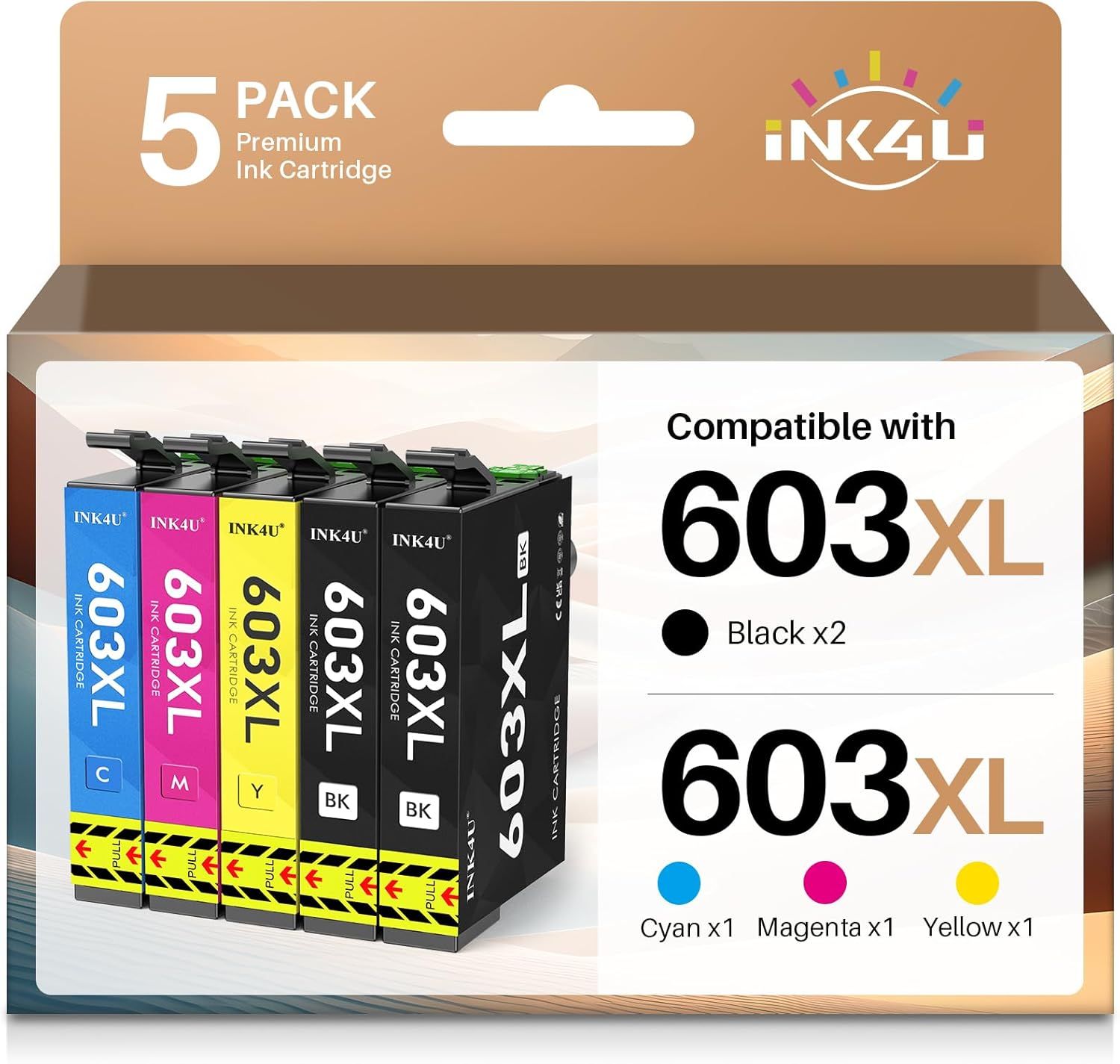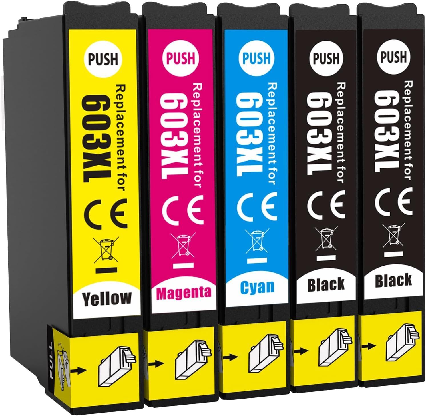 Cartouche d'Encre 603 XL, 603, 603xl - Rechange pour Epson 603, 603 XL, Epson Multipack 603, XP-2100 XP-2105 XP-3100 XP-4100 Workforce WF-2810 WF-2830 WF-2850 (5 Paquets)