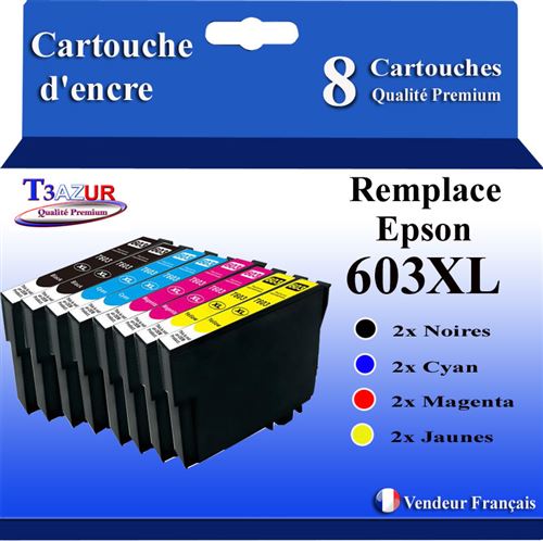 T3AZUR - 8 Cartouches Compatibles avec Epson 603 XL pour Epson XP-2100 XP-2105 XP-2150 XP-2155 XP-3100 XP-3105 XP-3150 XP-4100 XP-4105 XP-4150 WF-2810 WF-2820 WF-2830 WF-2840 WF-2850