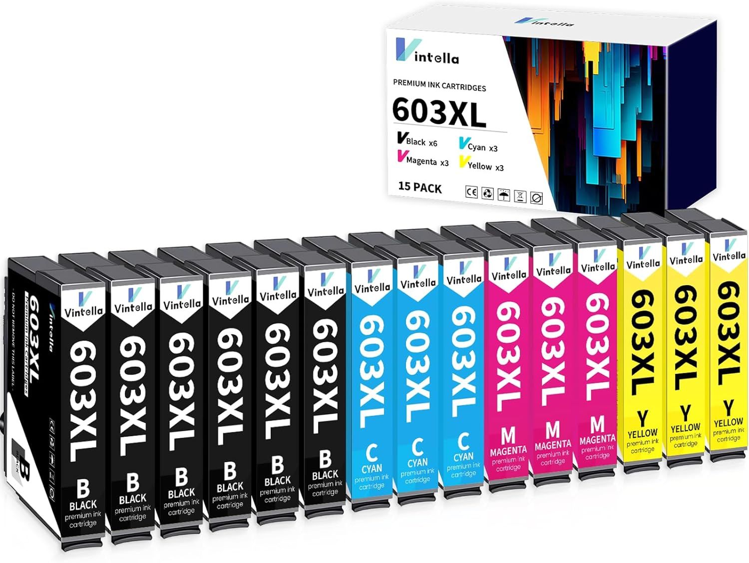 Vintella 603XL Cartouche d'encre pour Epson 603 XL Multipack pour Epson Expression Home XP-2100 XP-2105 XP-2150 XP-2155 XP-3100 XP-3150 XP-3155 XP-4100 XP-4150 WF-2810 WF-2820 WF-2830 (Paquet de 15)