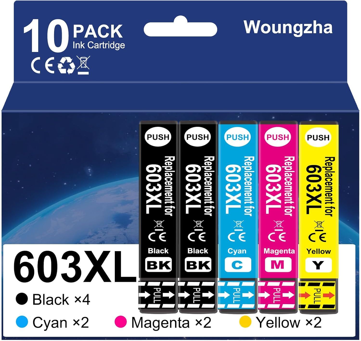 Jhaan 603XL Lot de 10 cartouches d'encre compatibles avec Epson 603XL 603 XL pour Epson Expression Home XP-3100 XP-3105 XP-3150 XP-2100 XP-4155 XP-4150 XP-4100 Workforce WF-2810 WF-2830 WF-2835