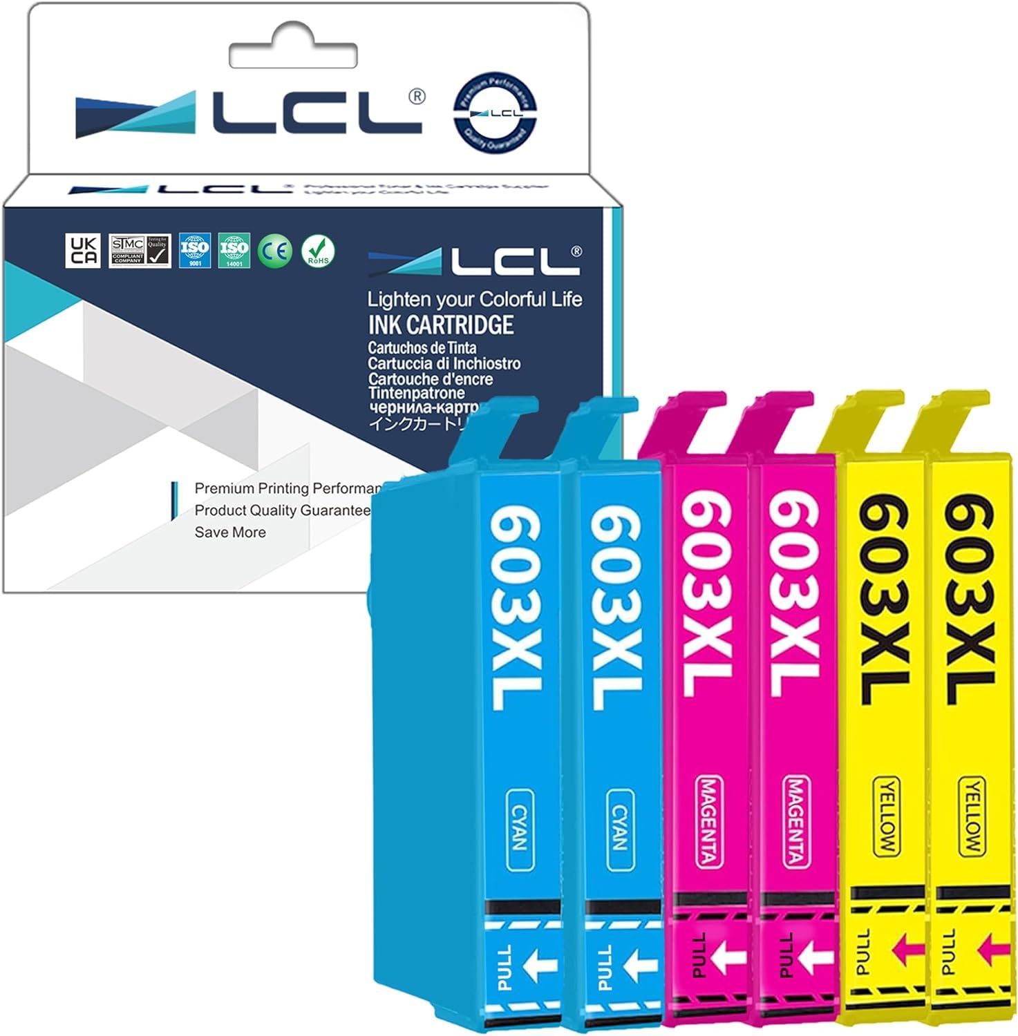 LCL 603XL Cartouche d'encre Remplacement pour Epson 603 XL Compatible pour Epson Expression Home XP-3100 XP-4100 XP-2100 XP-2105 XP-3105 Workforce WF-2810 WF-2830 WF-2835 WF-2850 (2C2M2Y,6Pack)